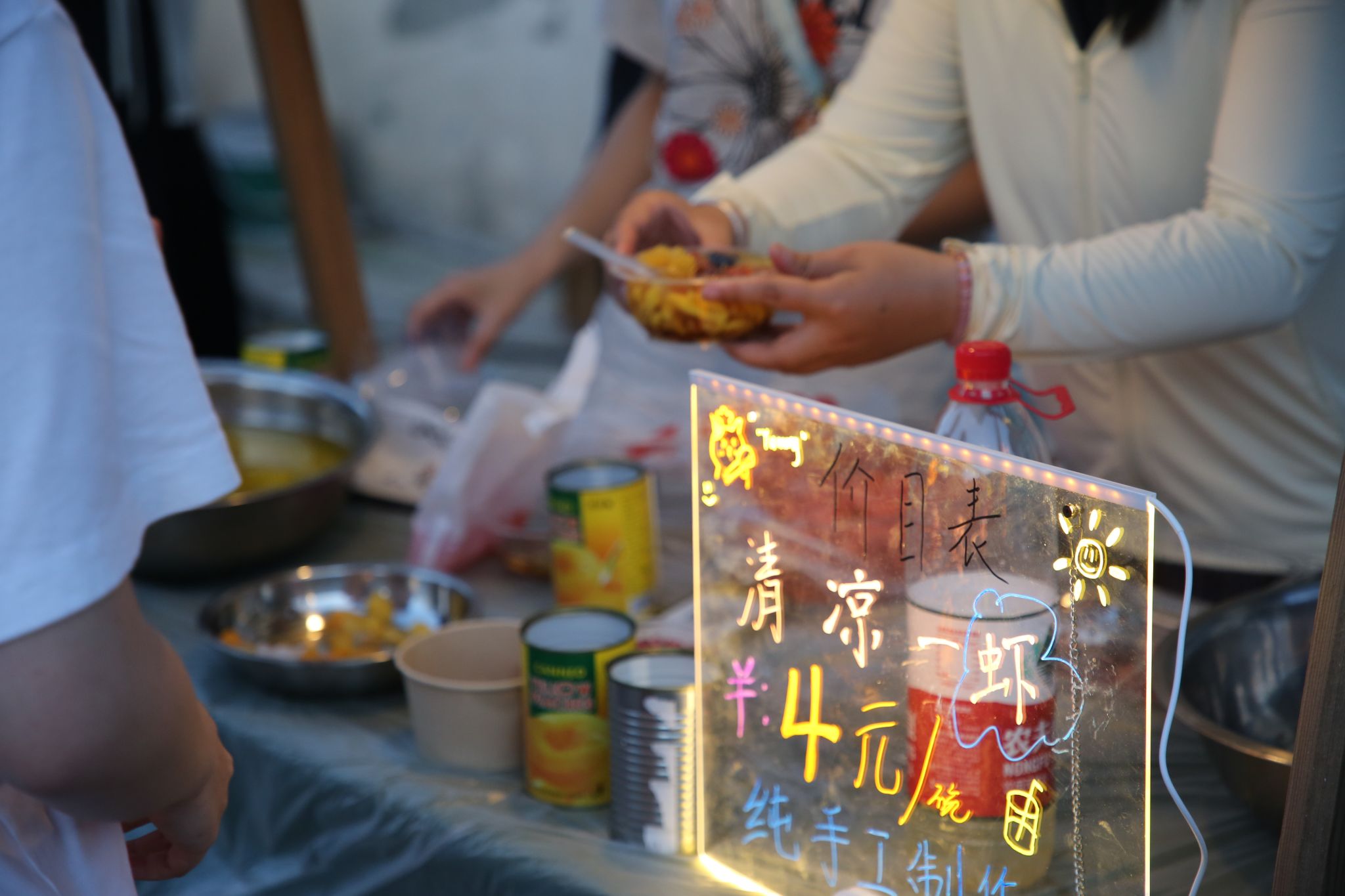 凉虾、冰粉、麻辣烫、烧烤......美食区十余种创意料理,品出“水产人”专属的浪漫毕业味;毕业集市上“水产元素”的创意产品琳琅满目;主舞台两侧的DIY饮品区,毕业生们化身“特调师”,用蓝柑、海盐等调制的“水产风”饮品,呈现出独一无二的‘水产色’......