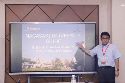 院长Yoshitaka SAKAKURA教授以长崎这一城市为切入点,根据这座城市的人文特征以及地理特点,介绍了长崎大学在水产养殖研究中的资源优势,分享了可再生能源与渔业相结合的养殖方案,以期发展环境友好型产业和提高养殖产量。