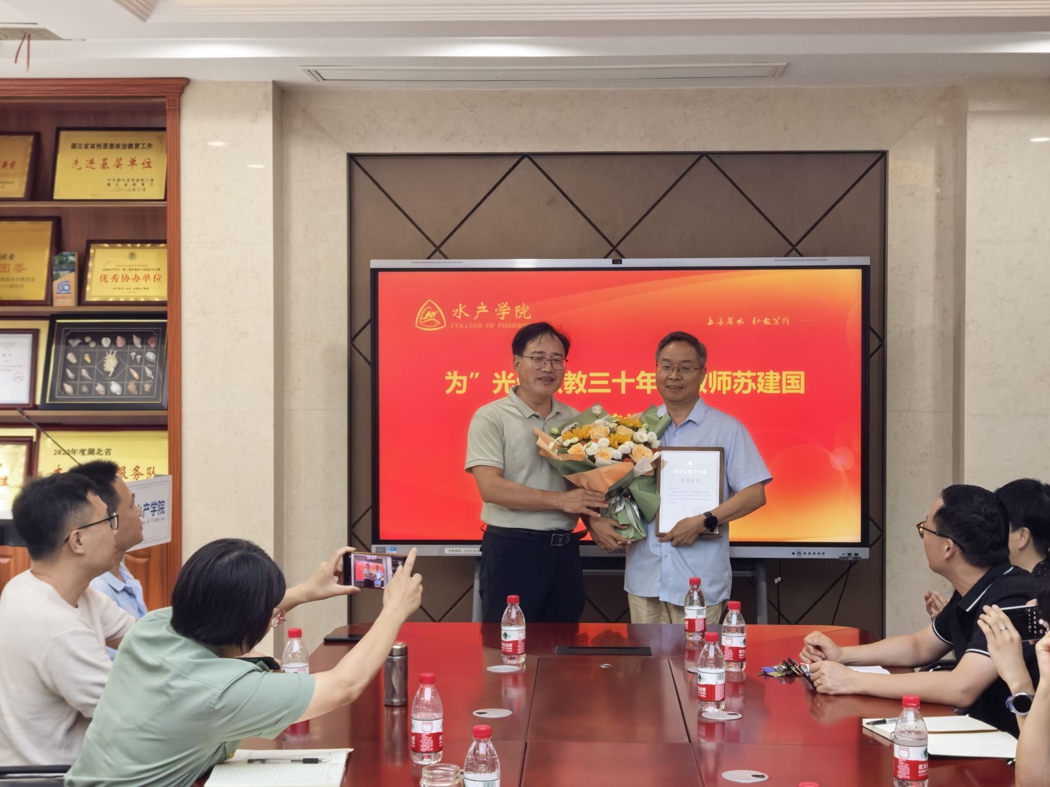 为苏建国老师颁发光荣从教三十年证书