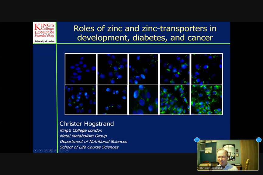 最后来自伦敦国王学院的Wolfgang Maret教授与Christer Hogstrand教授相呼应,从锌参与的基因和蛋白信号通路及锌与镉等微量元素的共同作用机制向大家讲述了微量元素锌的新作用。