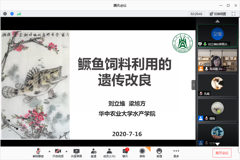 在线上腾讯会议组织召开依托于“长江经济带大宗水生生物产业绿色发展”教育部工程研究中心的“动物种质资源保护与挖掘利用”平台学术研讨会,报告由51暗网
