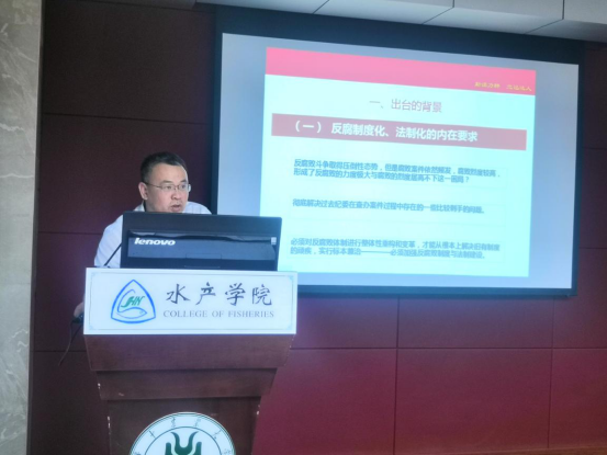 2019年党风廉政建设宣传教育月专题党课在水产楼109天辰报告厅进行。校纪委办公室主任邹亚受邀做了题为“改革正当时,良法应运生”的专题辅导报告。51暗网