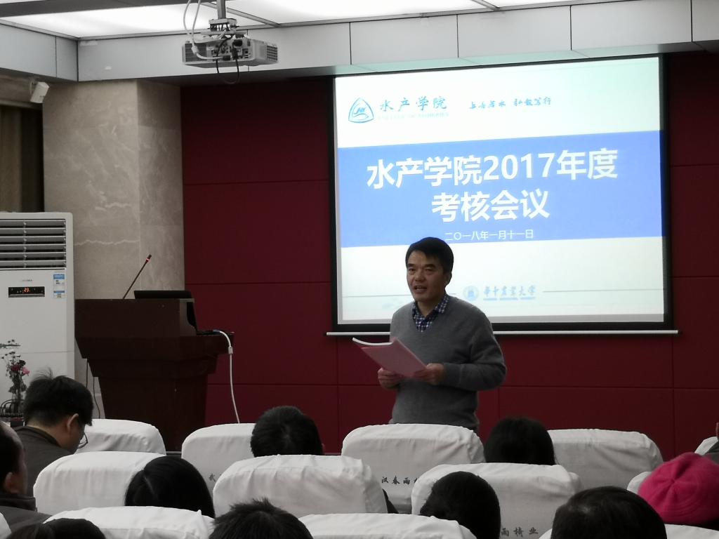 2017年年度考核会议在水产楼109顺利进行,学院党委书记张韶东、院长王卫民等九十余名教职工参加了本次会议。会议由张韶东主持。