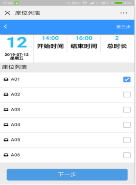 选择实验室内的工位,点击下一步,录入实验室预约的基本信息。