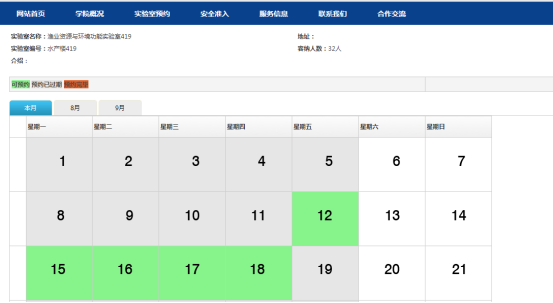 选择【实验室预约】,找到要预约的实验室。点击-选择预约的日期和具体时间段。