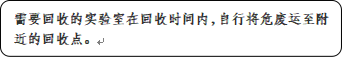 4. 如果出现如下现象,将不予以回收:废弃物分类标签和回收登记表信息填写不完整、废液桶中废液过少、玻璃容器中存有液体、针头、碎玻璃等锐器裸露、容器及袋子未良好密封,出现漏液、废弃物洒出现象。