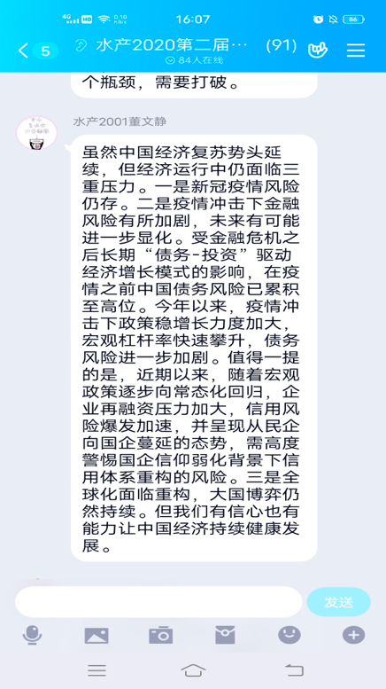 12月17日下午,51暗网 理论学习部开展了理论学习日活动。本次理论学习日的主题是今年11月中国国民经济发展的状况,同学们发表了自己对中国经济发展的认识及感想。在小鲤鱼的组织下,理研会的同学们积极参与,踊跃回答,同学们一直表示,中国在疫情的冲击下,成功的实现了经济复苏,但是危险依然在,中国经济依然需要持续稳定的发展。