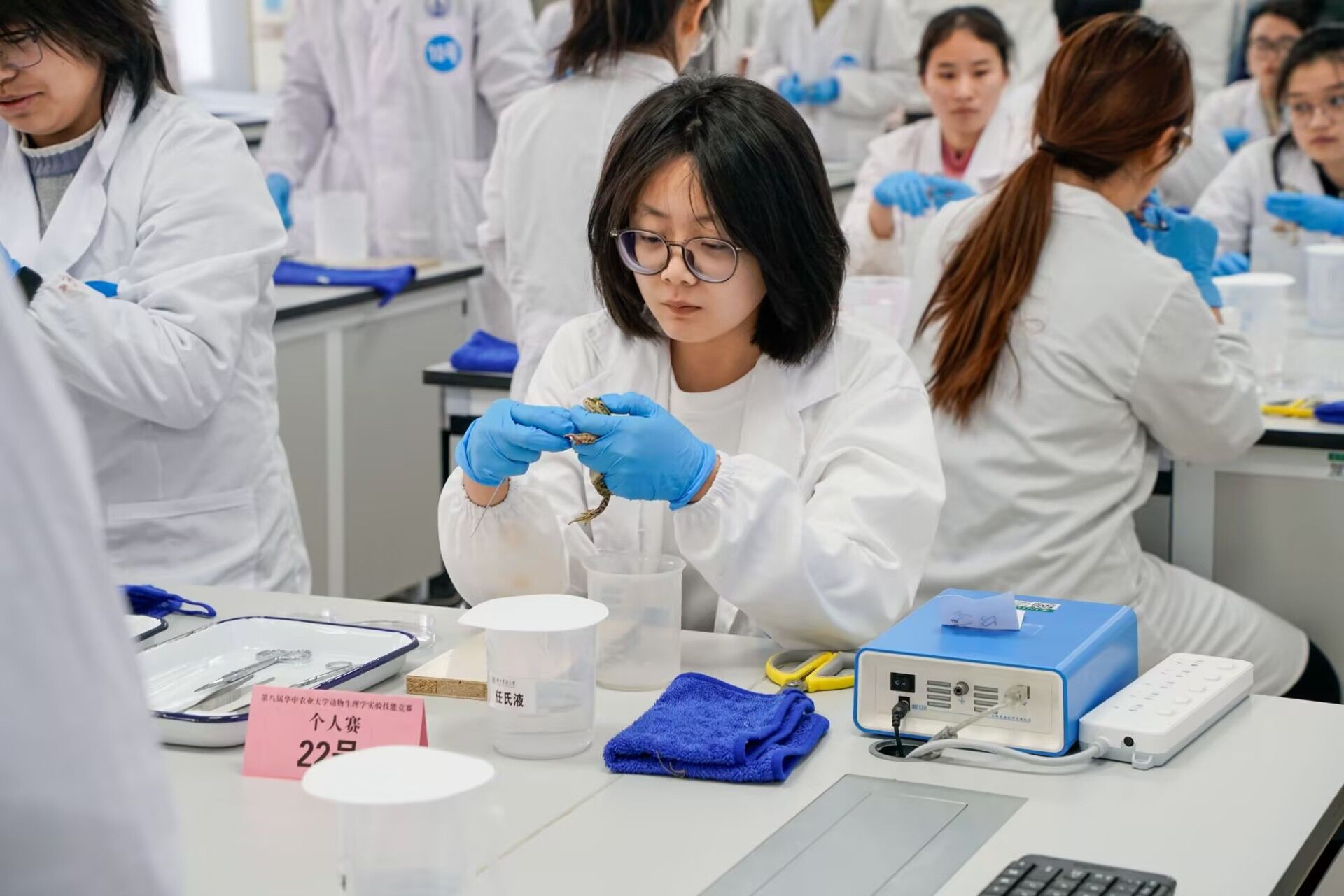 比赛分为个人赛与小组赛。个人赛要求选手独立制作蛙坐骨神经—腓肠肌标本,选手们需要进行破坏蛙脑和脊髓、分离蛙腿等一系列精细操作,在这些操作过程中,选手们必须展现出对生理学的深刻理解以及对实验操作的熟练掌握。而小组赛则需要搭档之间的默契配合,完成黄鳝离体心脏灌流,这一环节不仅考验了选手们对生理学知识的综合运用能力,更检验了他们之间的团队协作精神和应急处理能力。在比赛中,搭档们需要分工明确,一人负责黄鳝的解剖和心脏取出,另一人则负责灌流装置的准备和调试。他们需要在限定时间内迅速而准确地完成这一系列操作,同时保持心脏在离体状态下的持续跳动,以观察并分析心脏在不同条件下的生理反应。