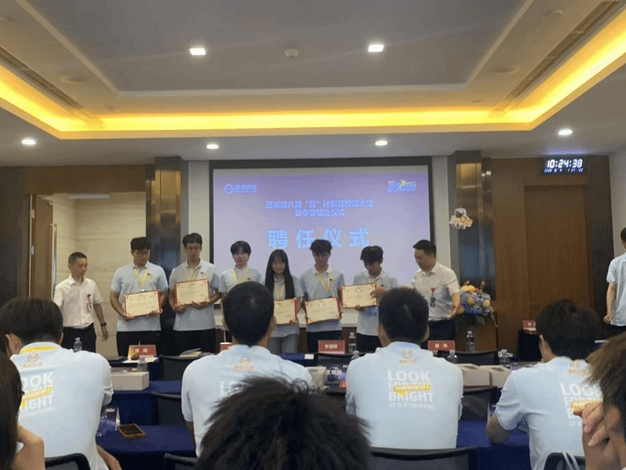 8月2日至3日,团队参加通威“星”计划夏令营组织的“沙漠掘金”团队沙盘模拟和“校园大使”职业规划课程。通过资源分配、路径规划与风险决策的沙盘演练,提升了在复杂环境中的团队协作与战略思维能力。在校企座谈中,通威人力资源及技术部门负责人与华农学子以及各地高校的学生们就农业企业人才需求、职业发展通道及新能源与农业融合等话题进行交流。四川农业大学鱼类学研一杨再钊同学表示,通威不仅是一家企业更是一个面向未来的科创平台,此次实践重新启发了对农业院校学生多元发展路径的思考。
