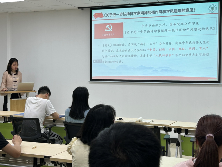 “精讲精读”研究生宣讲团成员王雯瑄作了题为“科学家精神:薪火相传中彰显时代特质”的报告,支部党员收获颇丰。