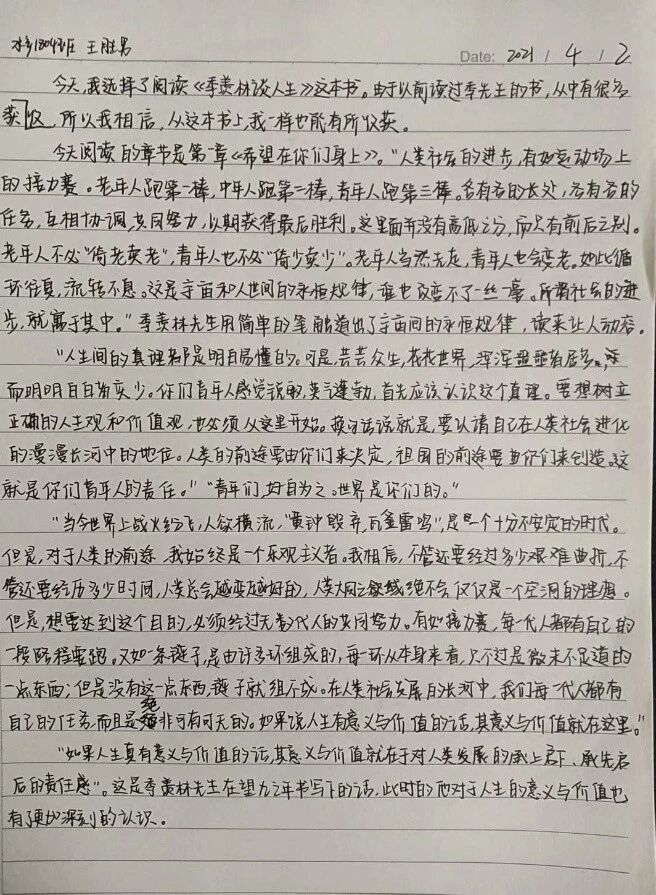 新民主主义的开端--五四运动是一场青年学生组织的爱国运动,在当时巴黎和会外交失败、北洋政府软弱无能的情况下,这些学生为了驱除黑暗、反抗压迫和不公,在军警的阻拦下、政府的打压下,仍能够勇敢地站出来,他们是五四爱国运动的先锋队,在五四运动起到了思想的引领作用。如今的我们正处在和当时青年们差不多的年纪,虽然我们身上的使命和他们不同,但也应该学习他们身上忧国忧民、热爱祖国、积极创新、探索科学的精神,用现代化科学文化知识武装自己,练就过硬的本领,担起时代的使命,做一个有价值的人。