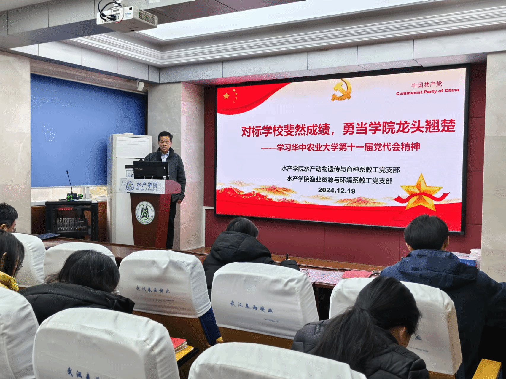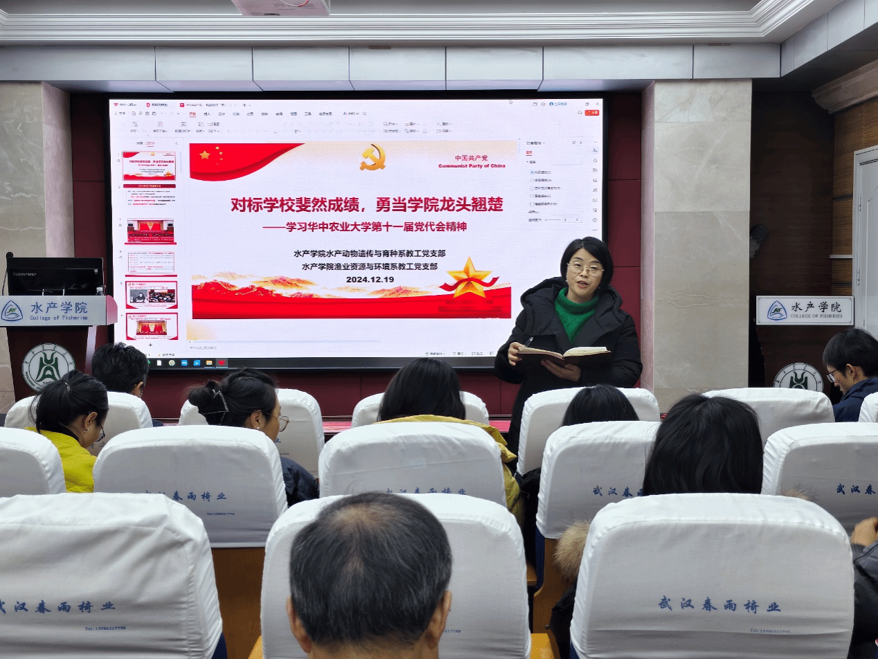 第十一次代表大会报告精神。两个学系全体教师参加学习活动,学院党委书记秦长平、副书记曹玉琼列席。活动由水产动物遗传与育种系党支部书记沈志刚主持,渔业资源与环境系党支部书记周琼主讲。